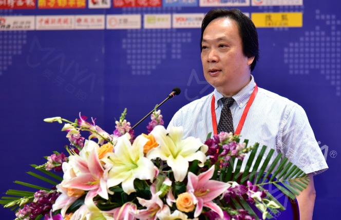 蔡斌教授致辞,通过交流和分享带动粤港澳整体正畸实力提升,造福大湾区有矫牙需求的朋友,感谢主办单位麦芽口腔集团及时代天使公司的付出。