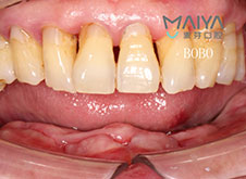 据冯先生介绍,他的全口牙从几年前就开始损坏了,平时会伴随牙疼、牙龈出血等,当时并没有什么明显的剧痛感觉,所以多年来也没有在意。直到几个月前发现缺失牙临近的牙齿有点松动,接着牙齿开始脱落,后来也上网查阅了资料,才发现缺牙不修复危害大:缺牙部位相邻牙齿少了支撑,容易倾斜导致松动,很多人都因为忽视,从而导致相邻牙齿逐渐松动脱落,不仅导致咀嚼功能急速下降,影响了生活质量,而且口腔结构的改变直接影响面容,会让人看起来比实际年纪苍老,冯先生不禁为缺牙烦恼起来。