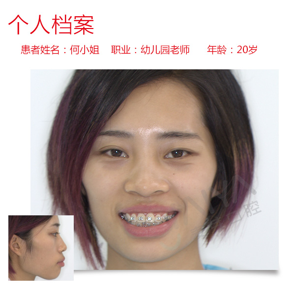 经过口腔全景片/头颅侧位片和口腔CT检查,张超主任经过全面分析认为,可继续使用托槽矫正,不拆卸,减少病人痛苦。何老师现在牙齿外突状况虽然已经对脸型造成了影响,但是牙骨还未变形,严格把控矫正力度,制定分阶段矫正方案,调整过来的成功率还比较高。