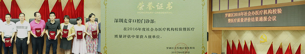 麦芽口腔连锁机构本月4日荣膺医疗服务质量评比A级单位,从209家医疗机构中脱颖而出,位于榜首,获卫计委相关工作人员表彰,以此肯定麦芽口腔2016年努力付出,同时鼓励麦芽口腔充分发挥先进典型的模范带头作用。麦芽口腔罗湖机构负责人在表彰大会上表示:“感谢市民、区卫计委的认可,麦芽口腔将继续致力于提升医疗服务质量、还原医疗本质,为广大市民提供高品质的口腔医疗服务。”