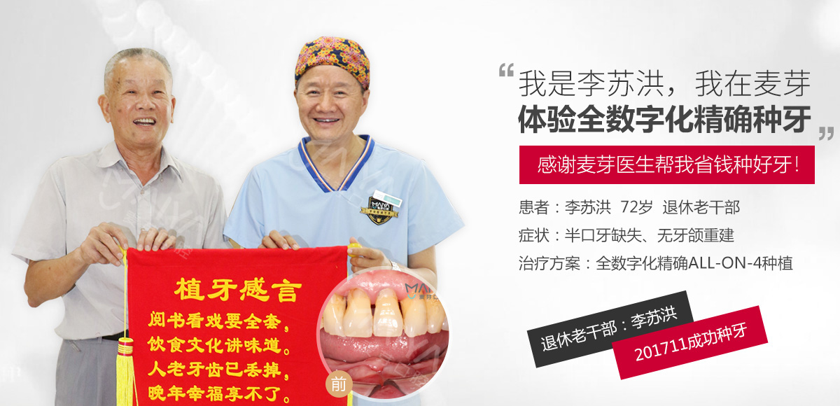 麦芽口腔注重交流,积极接轨国内外前沿种植技术与诊疗理念,结合国内患者口腔结构、骨质特点及身体耐受力,为国人量身定制了新的口腔种植体系——全数字化精确种植牙,从半口全口无牙颌重建,到牙槽嵴骨量严重不足,从高龄人牙周病种植,到术后即刻用技术,将精确、微创、舒适概念贯穿整个种植过程,真正让缺牙人术前术中术后都不受罪。【更多详细】