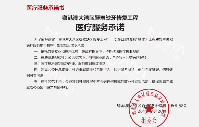 除作为工程执种单位外,麦芽口腔自成立以来积极投身社会事业,慰问孤寡老人、走访孤儿院、 开展义诊、 口腔检查、关爱深圳拓荒牛、广泛开展口腔健康大讲堂等,受到社会办以及各大媒体广泛赞誉。未来,麦芽口腔依旧会恪守初心,坚持以公益树品牌,扎根一方土地、 造福一方市民,以真诚实际的行动为缺牙人排忧解难。【更多详细】