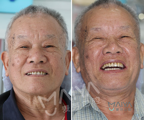 古稀老人5颗钉种出半口好牙 牙齿情况:半口牙缺失/牙周差 种植方案:牙周治疗+ALL-ON-4技术+即刻种植即刻修复